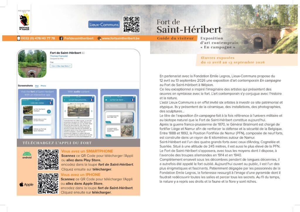 En partenariat avec la Fondation privée « Emile Legros », Lieux-Communs propose du 12 avril au 13 septembre 2026 une exposition d’art contemporain En campagne au Fort de Saint-Héribert à Wépion.