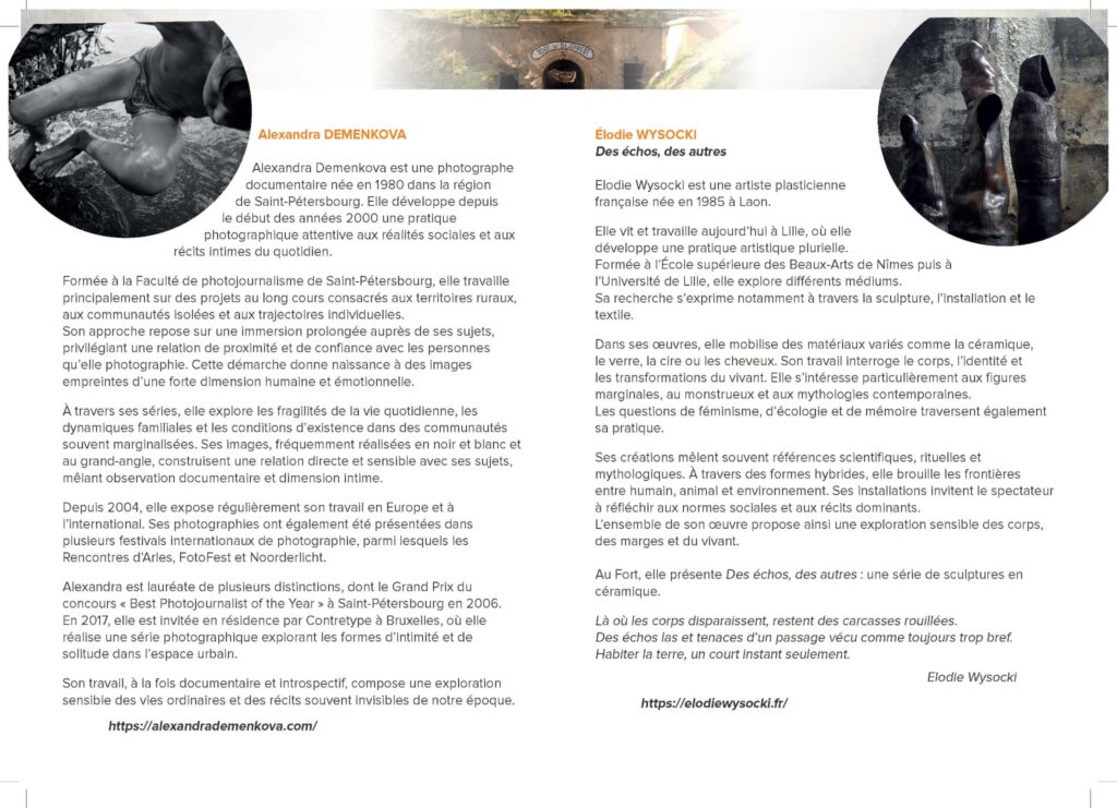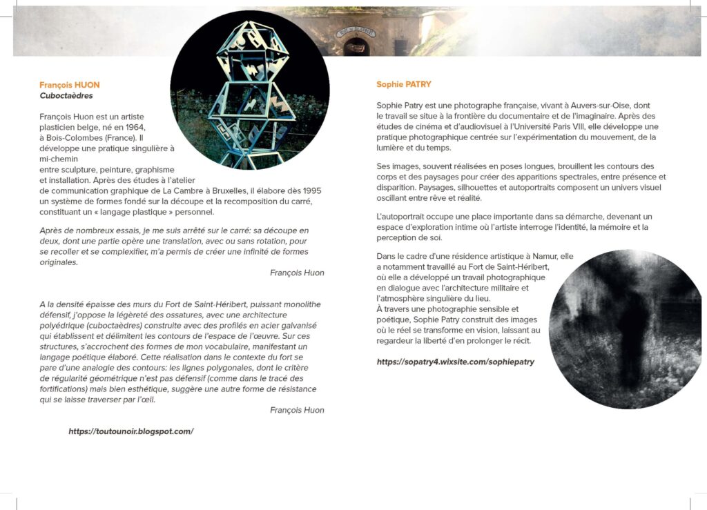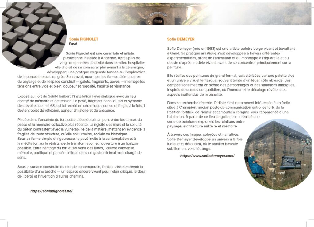 Dans le cadre d’une résidence artistique à Namur, elle a notamment travaillé au Fort de Saint-Héribert, où elle a développé un travail photographique en dialogue avec l’architecture militaire et l’atmosphère singulière du lieu.